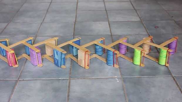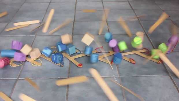 Palos entrelazados pueden almacenar una cantidad sorprendente de la energía. Pero usted puede conseguir fuerza explosiva aún más mediante la adición de gomas. La forma más sencilla de hacerlo es con una configuración que se llama "palancas inteligentes." Dos palos se colocan a ambos lados de un bloque. Las gomas se colocan alrededor de los palillos a un lado del bloque. Se tira de un extremo de los palillos juntos y aparte el extremo opuesto. Para unir los palillos, el extremo libre tampoco podrán ser considerado en lugar por un peso o colocando el extremo de los palillos entre otro conjunto de palancas inteligentes.