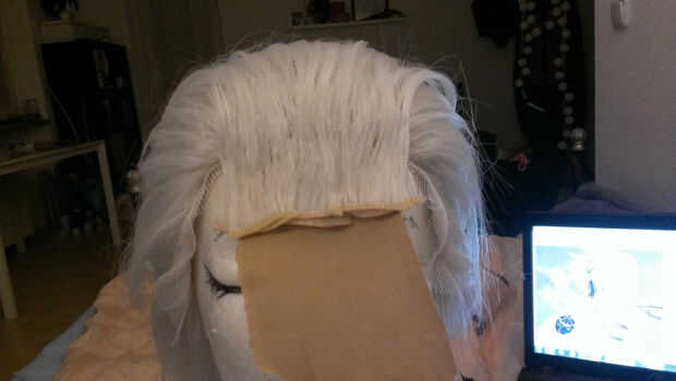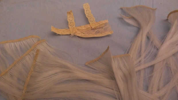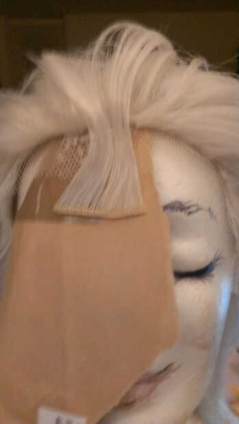 12) partí de izquierda sobre las tramas de peluca #2. Estos se añadirán como la línea del cabello para peluca #1.