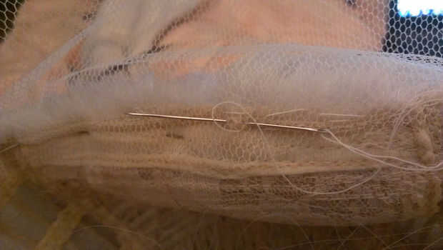 13)-17) pegado en la trama por trama para cubrir todo. Utilizando ahesive contacto aquí. Hice 2 capas de tramas