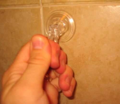 Nota: con el tiempo, la succión de la ventosa puede aflojar la cinta. Si eso ocurre, todavía debe sostener su taza de la succión, pero usted puede sólo volver a frotar la parte posterior adhesiva en el azulejo.