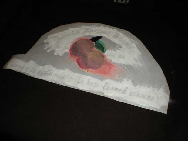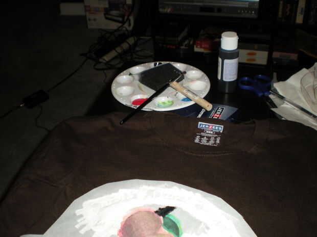 Para mi camisa, yo debo han aplicado al menos tres capas de todo, aunque la fruta tardó un poco más porque aprendí que neón amarillo no es un buen sustituto para regular de color amarillo cuando está tratando de mezclar colores para un tono apricot-ish.