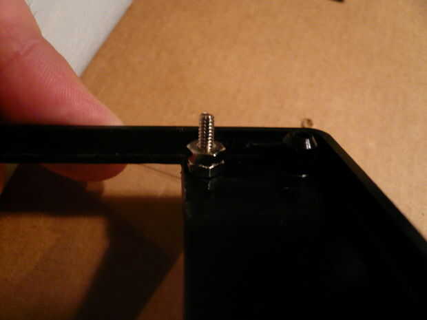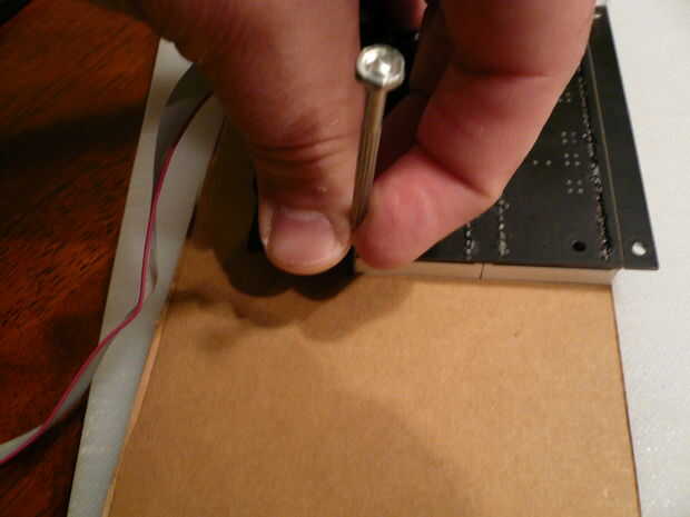 En este lugar, cada pantalla era en la tapa con los tornillos atravesando los orificios de tornillo y tuerca otro añadido para sujetar los tableros en posición.