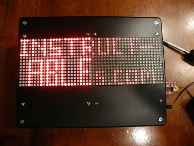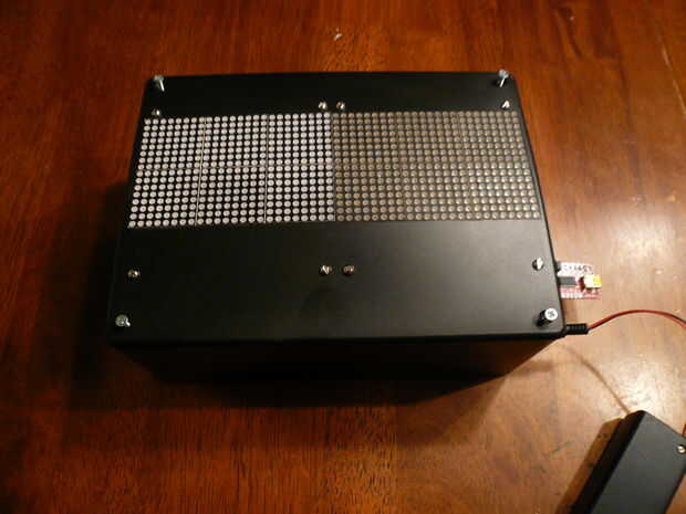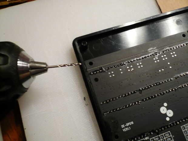 A continuación poner las pantallas de LED en su lugar y utilizar un taladro con un pequeño poco (3/64) para perforar agujeros a través de cada uno de los orificios en las placas de exhibición. (4 por placa, 8 en total).