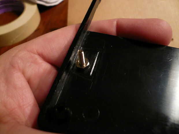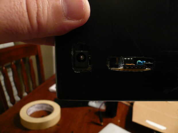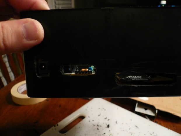 Para ello, usé una Dremel con un disco de corte. Las ranuras resultantes son mucho más grandes que es necesario y no muy recto. Había pulido un poco. También usé un esmeril para quitar algunos de plástico dentro de la caja para que la toma de DC en el tablero BBB está al ras con el borde exterior del recinto. Encontré que mi toma de entrada de CC no ir lo suficientemente lo contrario. Nota: El disco de corte en los cortes de Dremel, pero también derrite el plástico.