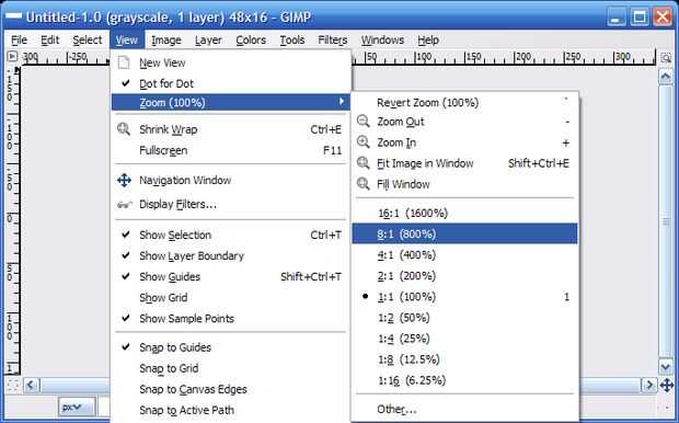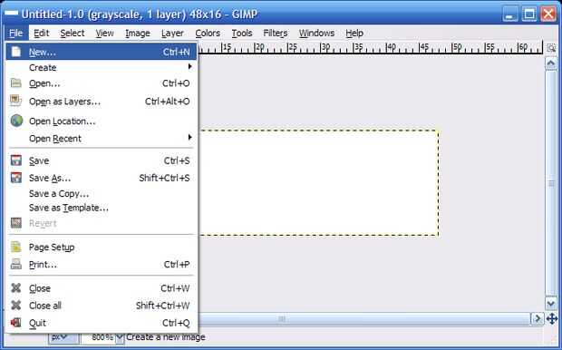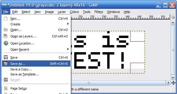 La mejor herramienta multiplataforma que he encontrado para crear archivos .xbm en GIMP. .XBM archivos son archivos de mapa de bits que se ejecutan de izquierda a derecha. Cada byte representa ocho píxeles negros o blancos. Las imágenes de abajo muestran cómo crear una plantilla de etiqueta de la ventana Digital en GIMP y cómo guardar archivos como archivos .xbm.