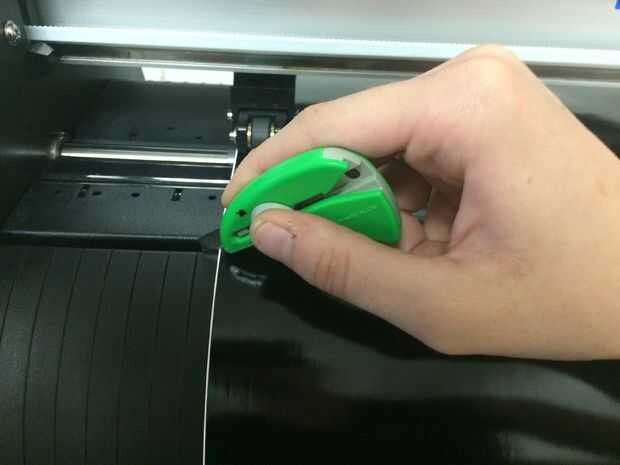Para cargar el material, el rodillo en el carro trasero y al corte, a continuación, tire de la palanca en la parte posterior derecha del cortador hacia usted para garantizar.