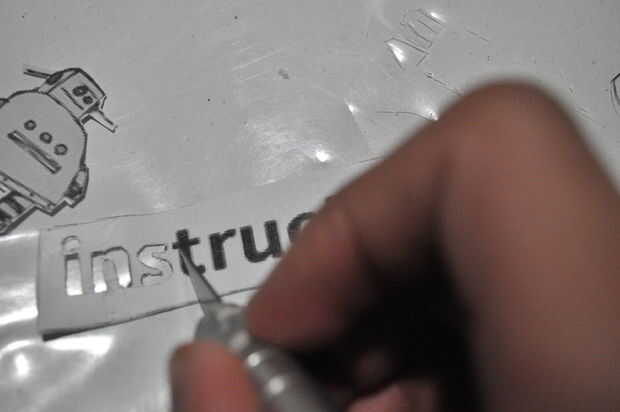 o bien puede dibujar la imagen o puede imprimirlo, pero para mi ejemplo, estoy usando el logo de instructables en la parte superior de esta página web. Use su tijeras/cuchillo y cortar la imagen para hacer una plantilla que traza en la cinta más adelante.