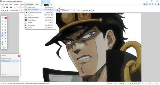 En segundo lugar, en la pestaña de ajustes verás la opción para que la imagen blanco y negro. (Foto 2) Haga clic aquí, dejó la acción completa y usted tendrá una nueva imagen de blanco y negro. (Foto 3)