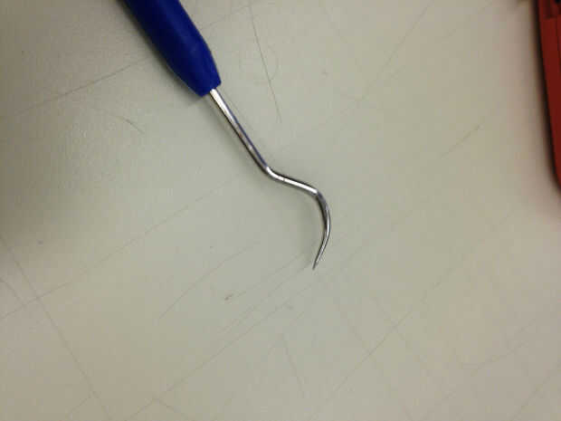 Escardar es un término usado cuando quitar innecesarios partes de negro de la etiqueta engomada del vinilo. Una herramienta escardando (imagen 2) tipo de parece una cosa su dentista utilizaría en usted. Se utiliza para despegar cualquier negro que no necesita. Esto debería dejar el archivo original del vector. (Imagen 1)