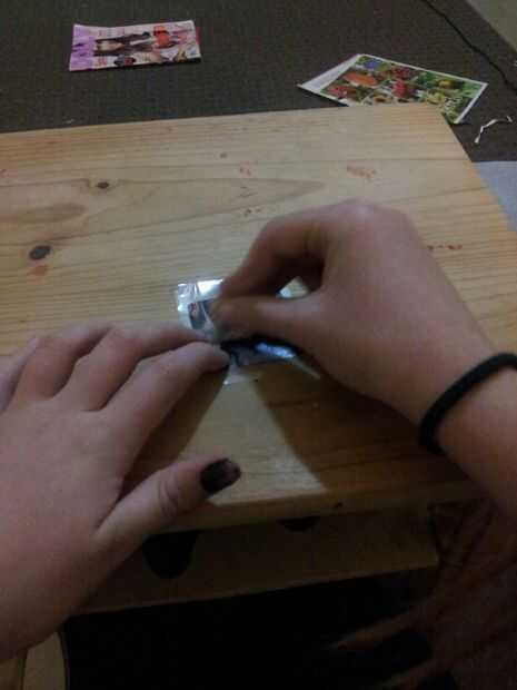 poner el recorte cara abajo sobre la cinta de embalaje y frotar con una moneda o la uña del dedo.