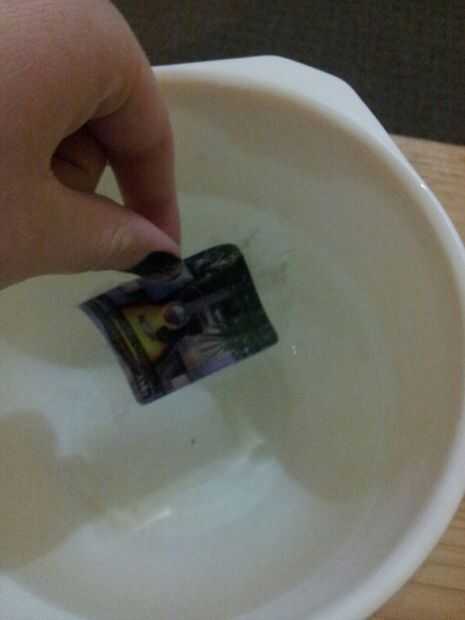 después de dos minutos sacar la etiqueta y empezar a raspar el papel con el dedo. no utiliza sus uñas como raspa a la tinta. una vez que el papel se ha ido enjuáguelo con agua tibia y secarlos con una toalla.