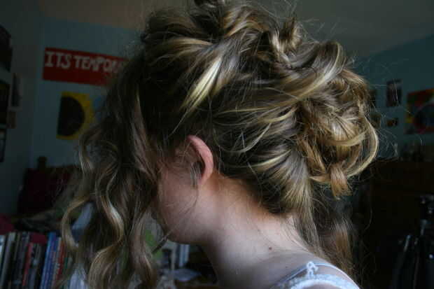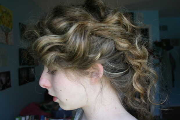 Empezar por tu pelo que se encrespa. Envolver el cabello alrededor del cañón para dar a tu pelo un aspecto más natural y voluminoso. Cuando estoy en una prisa por la mañana, Rizo sólo la parte delantera y la parte superior de mi pelo. Dejar el cabello rizado en el frente y la parte de atrás de la trenza antes de fijar en un bollo. Luego, prender pequeños mechones de pelo en la parte posterior. He hecho este hairtsyle en 5 minutos, que es ideal para las mañanas ocupadas. En este tutorial, yo había rizado mi cabello todo antes de poner en un bollo sueltos, pero básicamente tiene el mismo efecto. Solo pin todo al azar y de alguna manera funciona. Asegúrese de que la mayoría de las horquillas está ocultos, y el pelo no está demasiado apretado contra su cabeza.