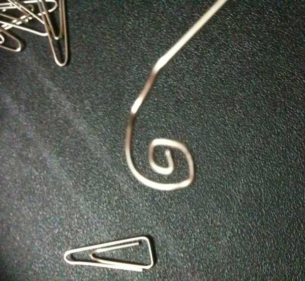 To do the swirl.. enderezar el el clip de papel.