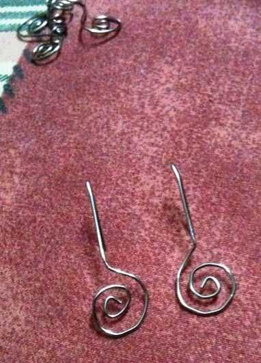 hacer espirales completadas con otro dos clips de papel, pero hacer un pequeño lazo en el extremo... como para un colgante. Fije a los pendientes... hacer un extra para la cadena.