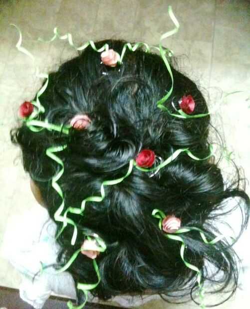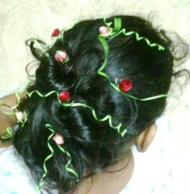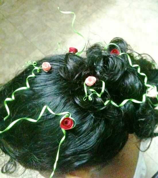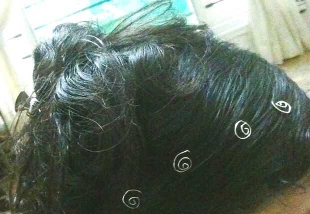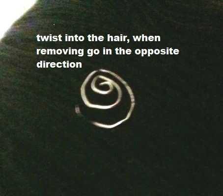 Ahora simplemente conéctela pelo enredar la hierba con las rosas y girando al cabello. Para quitar el espiral... sólo gire al otro lado.