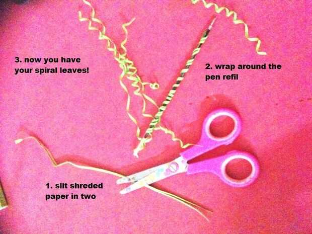 la hierba - hendidura verde rallado papel en dos... envolver las tiras firmemente alrededor de un lápiz... y luego retirar suavemente de la pluma.