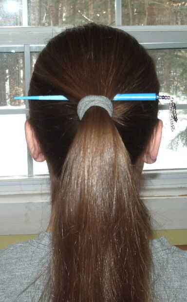 2. Inserte el palillo del pelo cabello recolectado, detrás de lazo de pelo.