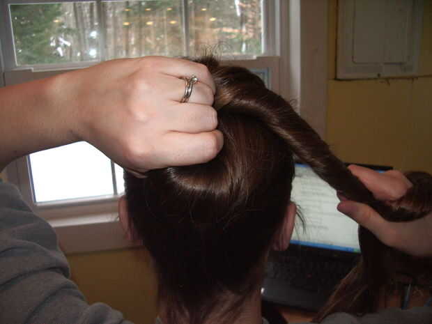 1. reúna el pelo en la corona. Toda la longitud de la torcedura y llevar encima y alrededor, realmente atar el pelo en un nudo.