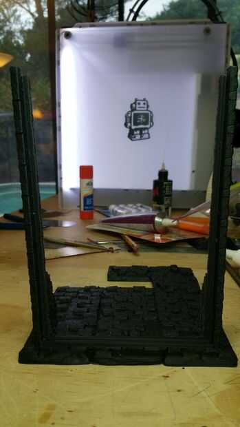La base es sólo una colección de paneles de piso de piedra juntos. Es suficientemente ancha como para adaptarse a joya y un poco más. Tiene 4 pilares de apoyo en cada una de las esquinas. Esto es donde se fijan los muros laterales.