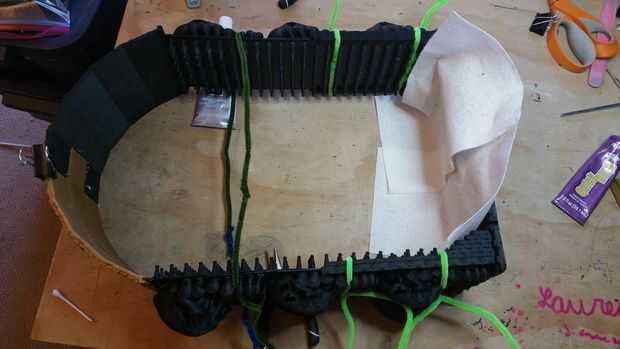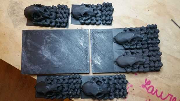 • Asegurarse especialmente de que hay suficiente pegamento entre los cráneos de la fila de centro y los huesos y el peine