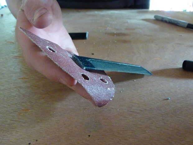 Corte el peine sobre un centímetro (3/8") más corto que los palitos. Debe dejar parte de la empuñadura para actuar como las bisagras. Lijar el corte una vez que se han cortado.