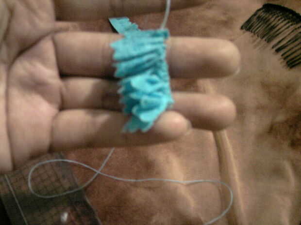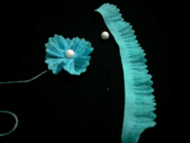 Cortar 3 piezas de encaje elástico cerca de 15 cm de largo