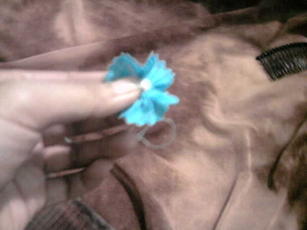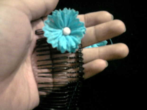 Poner la flor en el peine del pelo, flor de puntada alrededor de pelo peine más, 1 por 1, también se puede poner pegamento en él