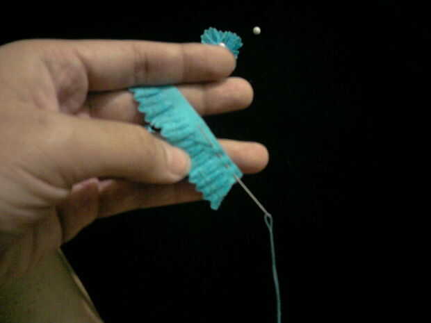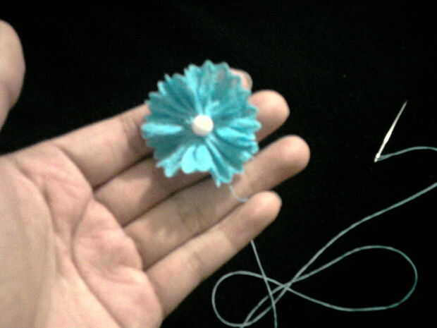 En este punto usted puede coser la flor cerrada, añadir una gota en el centro