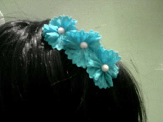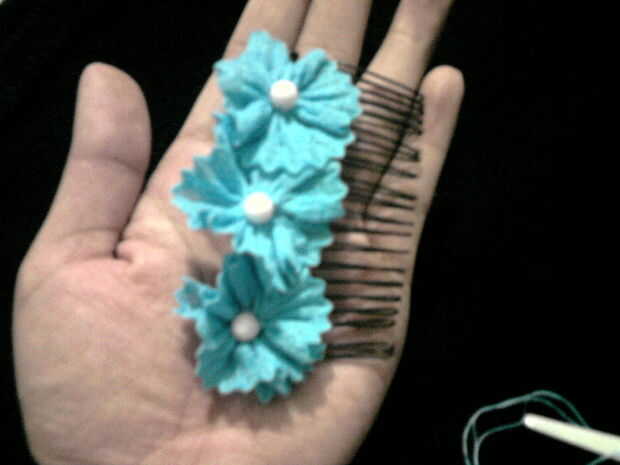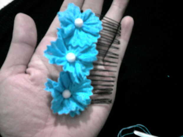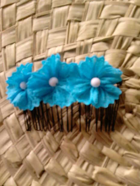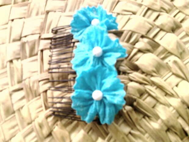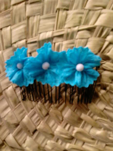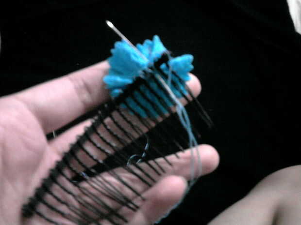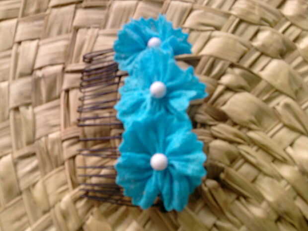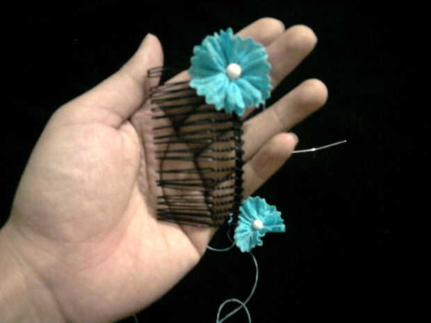 paso uno: reunir sus materialesUn peine viejo (o nuevo, si prefieres)Flores de papel o tela (suministros de reserva chatarra y pinzas de pelo son lo que utilicé)Una manera de fijar al peine (Elmer o pegamento)Paso 2: preparar los materialesQuitar cua