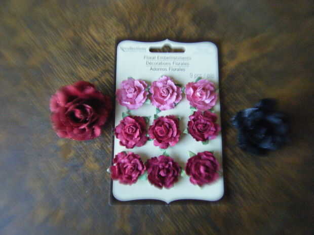 Flores de papel o tela (suministros de reserva chatarra y pinzas de pelo son lo que utilicé)