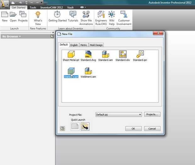 Seleccione Standard.ipt y haga clic en Aceptar para iniciar un dibujo nuevo.