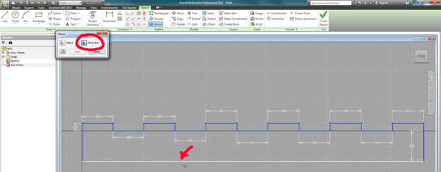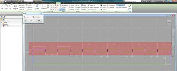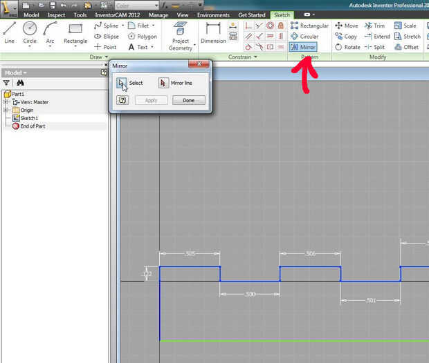 3. a continuación haga clic en línea de espejo y haga clic en el segmento de la línea inferior del peine.