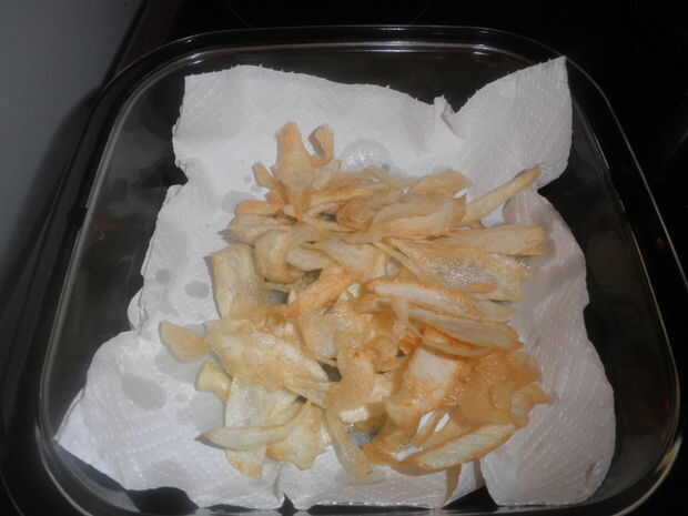 colocar en un plato con servilletas, etc y repita con el resto patatas