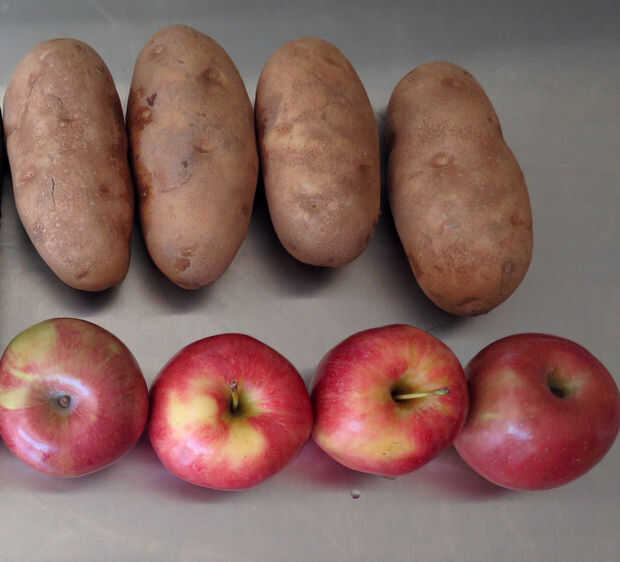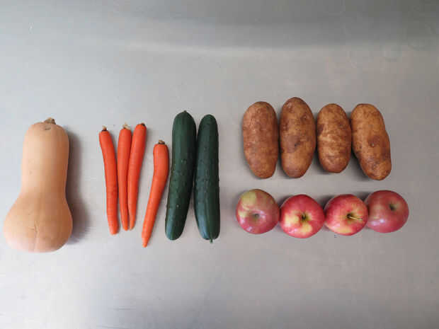 Ingredientes: he encontrado más éxito con patatas y manzanas. No dude en probar diferentes tipos de frutas y vegetales.* *