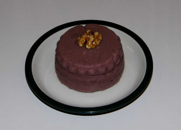 Volcar la mezcla hacia fuera en un plato cuando se enfría y decorarlo. Acaba de poner una nuez en la parte superior pero podría salpicar con chocolate caliente, así si te gusta.
