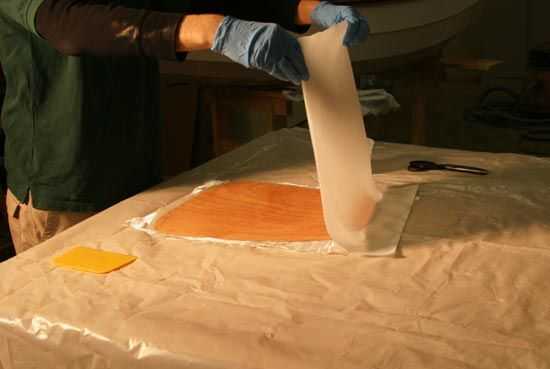 Una tapa de escotilla de kayak (los planos, como en el CLC pardelas o patos de madera) es un perfecto candidato para el tratamiento de capas de piel.