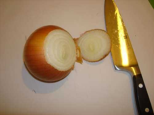 Mi experiencia anterior en corte mitos involucrados cebollas sobre pegarse un pedazo de pan en la boca, ya sea cortar la parte superior o la corona primero, respirar solamente a través de la boca e incluso recurrieron a usar natación gafas!