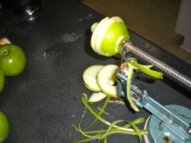 5. Gire el puño giratorio en sentido horario hasta que la manzana pasa a través de la máquina de cortar