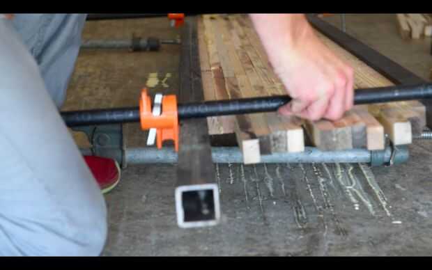 Ahora necesitas algo larga y sólida a la banda de rodamiento juntos. Usé 2 tubos de acero. Y aquí es donde las abrazaderas en. Como muchas abrazaderas como va a funcionar, utiliza abrazaderas para tubos de 6 y salió muy buena purga.