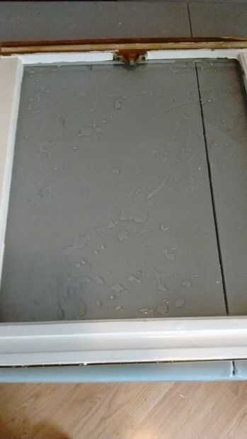 Ventana de spray con agua. Uso de botella de spray y dejar el agua reposar.
