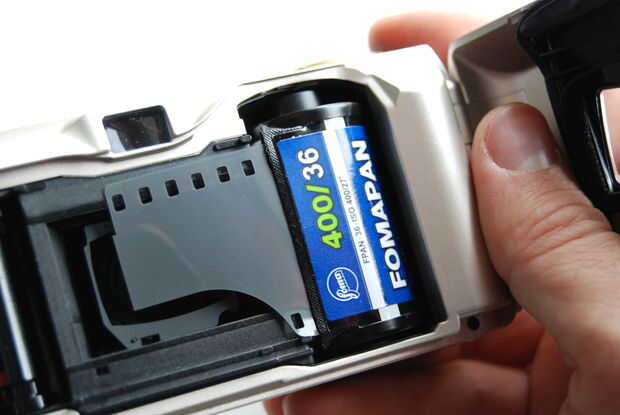 Para comprobar si los contactos son tocar correctamente la etiqueta, coloque la película en la cámara y mover un poco.