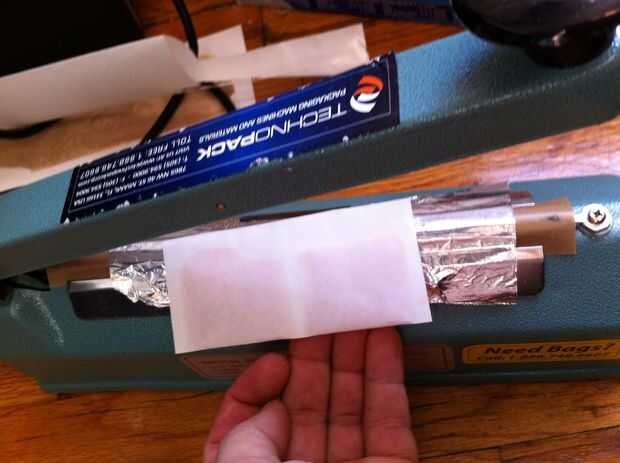 para un 4 X 5 2ml del reactivo es cierto, he utilizado un sellador y un congelador / papel para hacer la vaina doble con el recubrimiento de plástico en el interior del carnicero