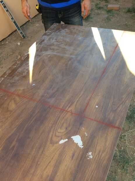 -Utilice una sierra de mesa para cortar la forma de la madera. Etiqueta esta parte "trasera" con lápiz