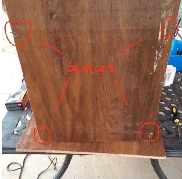 Apoyar la pieza posterior verticalmente sobre una mesa o Banco de trabajo y descanso la pieza inferior en la parte superior para obtener una forma de "L". Voltear la pieza boca abajo por lo que es en forma funcional con la pieza posterior más alejada de usted, las dos paredes a la izquierda y derecha, la pieza de abajo en la mesa y una cantidad adecuada de espacio en el medio para la reproducción. La pared posterior debe ser de 22 pulgadas de alto y las paredes deben ser aproximadamente 18 pulgadas de alto. Se va en las paredes laterales, espaciadas uniformemente, los tornillos y los tornillos de la parte inferior, que va en la parte posterior, por lo que es la cabeza del clavo no se verá en la parte inferior. También habrá tornillos desde la parte inferior en los lados, pero usted debe asegurar los costados en la parte posterior en primer lugar, con 4 tornillos en ambos lados. Tomar las dos paredes y conectarse los lados rectos de las paredes de la pieza inferior.