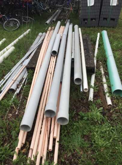 Para encontrar cubos y tubos de PVC sobrantes, recomendamos viajar a las instalaciones del HQ de un campus cercano, por ejemplo una universidad o un complejo de oficinas.