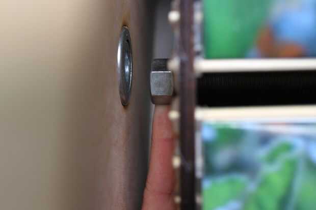Para conseguir las tuercas en difícilmente alcanzar lugares, encontré que la herramienta más útil fue un par de pinzas de soldadura punta extra larga. Eran lo suficientemente fuertes para sostener la tuerca en su lugar, mientras que retornando a la varilla roscada a la posición correcta.