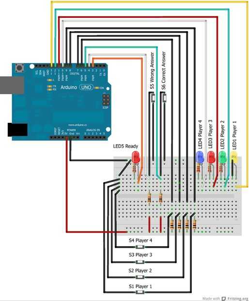 Si usted sigue el diseño de protoboard, comprobando con el esquema, podrás subir el sketch de Arduino más abajo y, después de la instalación, vea el reproductor en modo chase se iluminan.