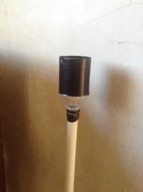 Hay botellas de refresco de 24 2 L que cada uno Sostenga una planta individual. Nutrientes se bombea desde el depósito inferior a la parte superior por 1/2" tubería y reducir en 1/4" tubería va en cada uno de los mejores ocho 2 L botellas de ref