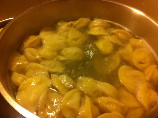 Cuando el agua esté hirviendo fuertemente añadir el pelmeni.