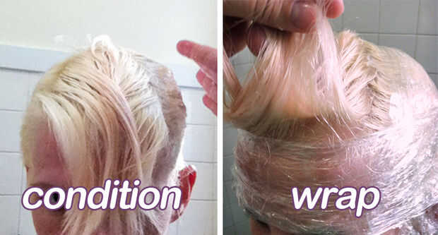 • Proteger el resto del cabello del cloro o del tinte en él. En mi caso, lo adoba profunda acondicionador en el pelo quería salir Rubio y luego lo envolvió todo en plástico!
